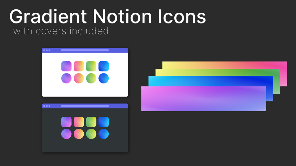 In this pack you will get both square and circle icons in four gradient combinations. Matching gradient covers are also included!